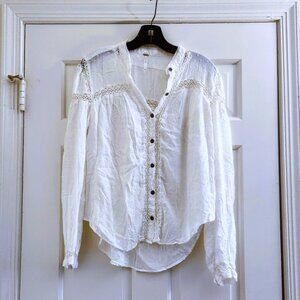 Free People sz S Swiss Dot Everyday Every Girl Lace Top Button Down Blouse