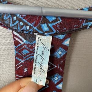 Free People sz S blue tribal print mini boho shift dress