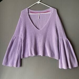 Free People sz S purple knit bell sleeve 100% cotton sweater NWOT