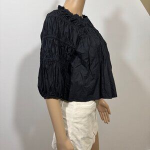 Free People sz XS Black Off Shoulder Smocked Peasant Baby Doll Blouse Crop Top