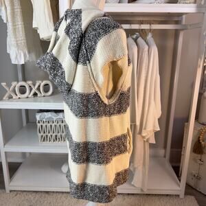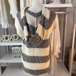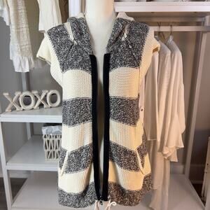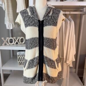 Free People sz. medium white & marled black full zip short sleeve sweater. #1868