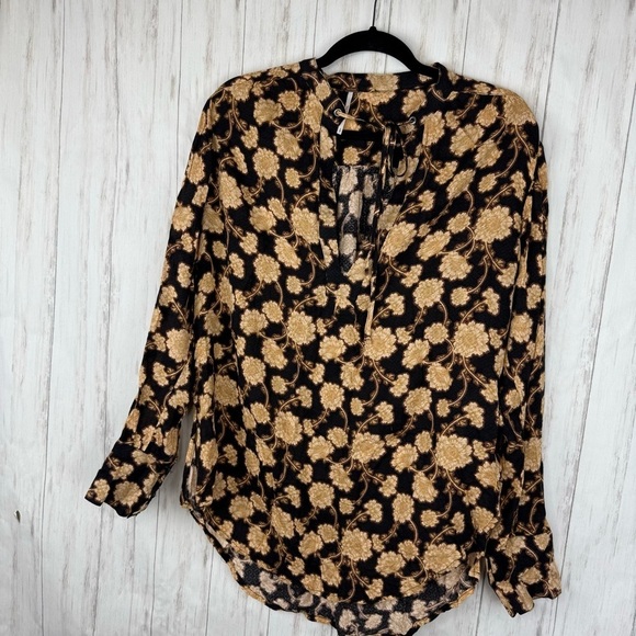Free People tan and black floral blouse
