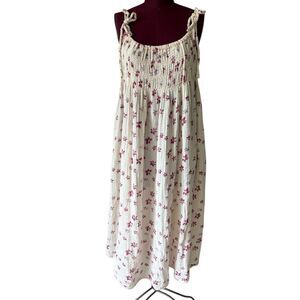 Free People textured floral print midi smock dress size S Cream Pink Ditsy Boho Bohemian Sleeveless
