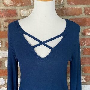Free People the Andi Long Sleeve Criss Cross sweater in blue size small