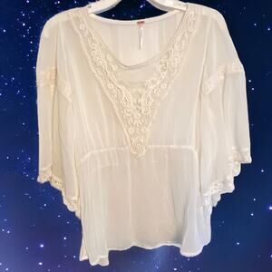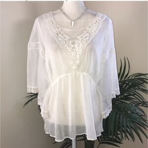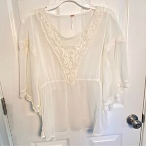 Free People Lace Sheer Crinkle Batwing Top S