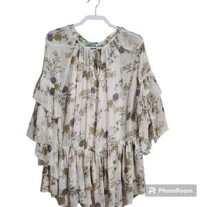 Free People cream with grey/gold floral pattern tunic dress with tank