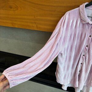 Stand out in this so special button-front top featured in a stunning velvet fabrication with ribbed, smock-inspired detailing throughout for added dimension.