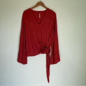 Free People v-neck tie front wide sleeve red textured top size medium