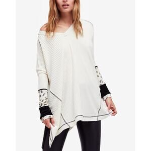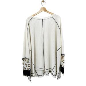 Free People white oversized waffle knit leopard cuff thermal