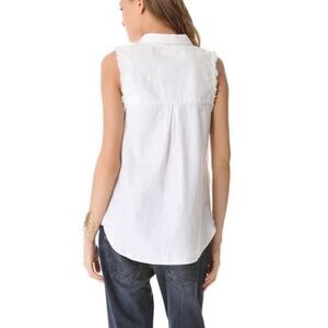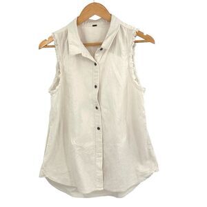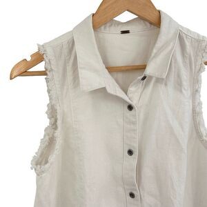 Free People white sleeveless linen blend sleeveless shirt size small with pockets. Gentle preowned condition. See photos for details measurements and fabric content. Size tags are missing but measurements are in line with a free people size small