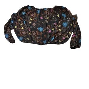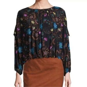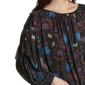 Free People wildflower black Long Sleeve balloon sleeve Blouse oversized Medium