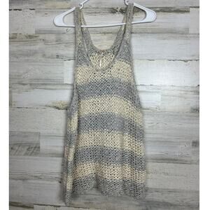 Free People women small Stars That Shine gray white wide knit sweater tank top