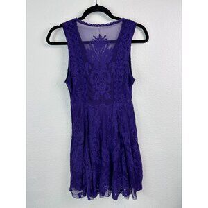 Free People women's 0 purple lace v-neck sleeveless mini fit and flare dress