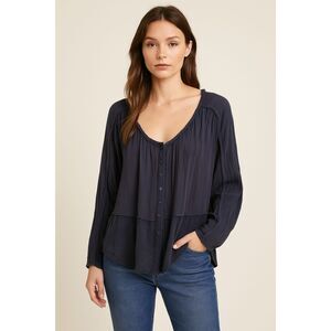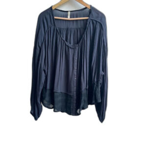 Free People womens Black Cool Meadow Top Button down Cotton boho Size Large
