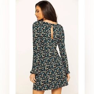 This elegant floral dress features a beautiful blend of colors, perfect for any occasion. The long sleeves add a touch of sophistication.