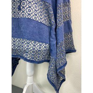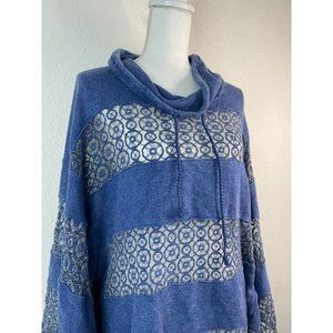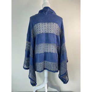 Free People womens XS oversized blue cowl neck poncho pullover lace boho striped