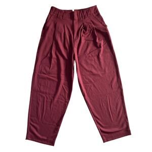 Free People women’s high-waisted tapered pants in a rich red/burgundy color.