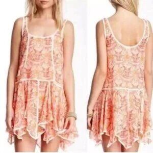 Free People women's orange Creamssicle voile slip tunic dress damask in size XS Great Condition Size XS Style: boho, bohemian, high low, handkerchief hem, flowy, sheer, summer, spring, beachy PTP: 16.5" Length: 30.5" ✨ For more information please feel free to contact me or make your best offer ✨