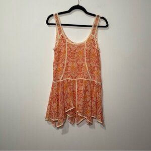 Free People women's orange Creamssicle voile slip tunic dress damask in size XS