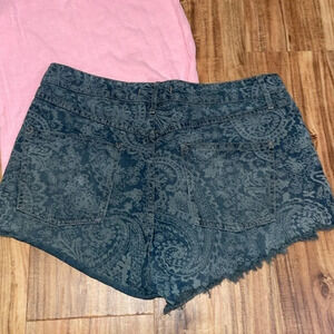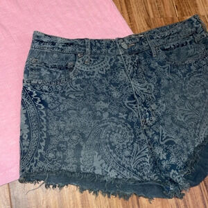 Free People women’s shorts 30 Jean denim frayed floral print design FP blue