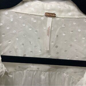Free People women’s white pearl Sheer polka dot silk lining romantic Blouse in L