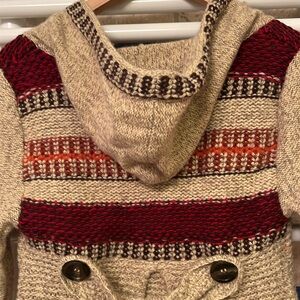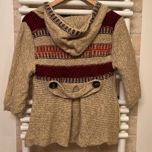 Free People wool crop hooded sweater BOHO style (tan, red/orange) size M