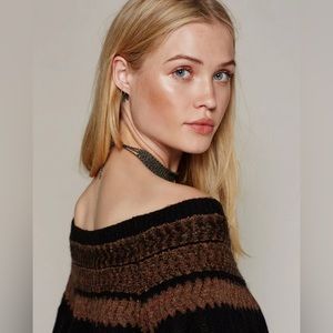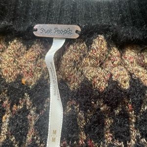 Free People wool linen blend off the shoulder sweater shawl medium Aztec fall colors brown and tan