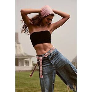 Free People x Bands Of LA Wrap Belt in Black. Features knit pattern, fringe ends, and tie closure. Style 58592429. 100% Cotton. NWT / New with tags. Stock photos are in different color and only for reference of the styling.