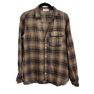 Free People x CP SHADES Linen Flannel Button Up Shirt Tee Top Women's Size Small