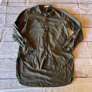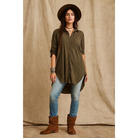 Free People x CP Shades High Low Button Down 100% Cotton Olive Brown Size XS