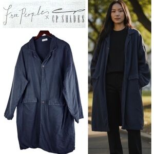 Free People x CP Shades Jacket Coat Oversize Large Navy Blue Minimalist Fleece
