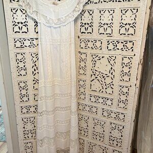 The ultimate romantic dress for your next getaway, special occasion, or photoshoot. This stunning floor-length maxi features delicate crochet and lace trim with a breezy 100% cotton design.