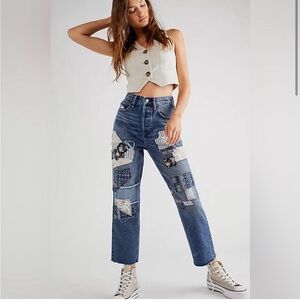Free People x Driftwood Jordie Patch Embroidered Cigarette Cropped Jeans. 26