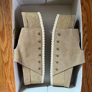 Free People x Intentionally Blank Rule Breaker Flatform Taupe Sandals Sz 7.5 NIB
