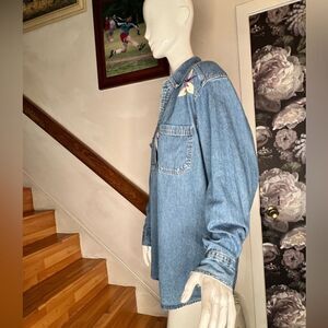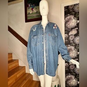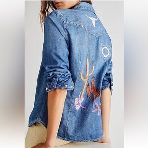Free People x Levi’s The Wolves Blue Denim Embroidered Cowboy Shirt
