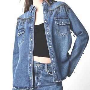 Free People x One Teaspoon Razzle Dazzle Western Denim Shirt Size Medium Fringe