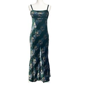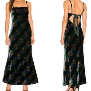 Free People x REVOLVE Juliet Velvet Printed Maxi Dress Emerald Combo Small NEW