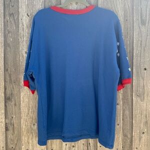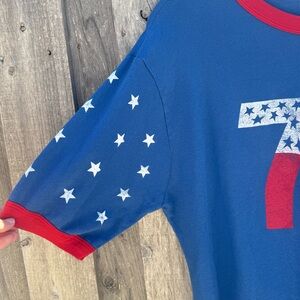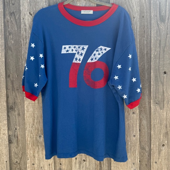 NWOT – never worn, perfect condition. Size medium with an intentionally oversized, slouchy fit. Features soft cotton fabrication, contrast blue ringer trim, and bold varsity-style “32” graphic at the front and sleeve. Part of the Free People x Ragabond Studio collab, this vintage-inspired tee pairs perfectly with denim shorts or jeans for that laid-back sporty look.