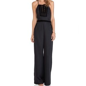 Free People x Revolve Black Tuxedo Jumpsuit Lace Inset Wide-Leg Open Back 0