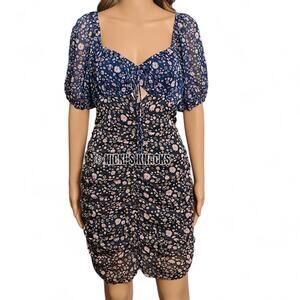 Free People x Revolve Tessa Mini Dress Cut Out Floral Print Ruched Blue Size M