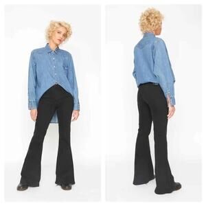 Free People x Sandrine Rose Black Distressed Super Flare Jeans Size 30