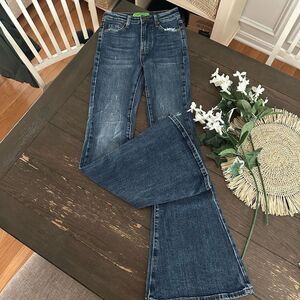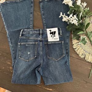 Free People x Sandrine Rose Blue Faded Distressed Bell Bottom Jeans sz 24 New