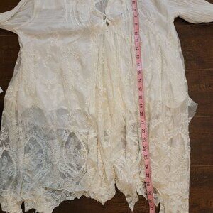 Envelop yourself in a dreamy, ethereal aura with this Free People We The Free X Tricia Fix blouse. Its delicate lace details and flowing silhouette evoke a romantic, medieval elegance, perfect for wandering through enchanted realms or adding whimsy to modern adventures. A timeless blend of boho charm and vintage inspiration.