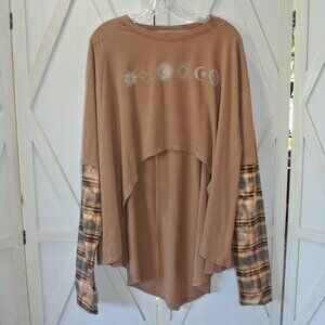 Add effortless edge to any look with this essential tee featuring vintage-inspired short sleeve in a cropped silhouette with art-based solar print and contrast plaid sleeves for the coolest two-for-one look no matter the occasion.