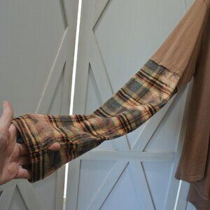 Approximate measurements laying flat: pit to pit = 29", shoulder to hem = 25" front, 27" back, neckline to hem = 13" front, 31" back