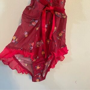 Free People x We Are HAH red Butterfly Bodysuit halter ruffled extra small