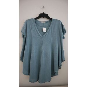 Free People x We The Free Women's Sz S Ocean Day Blue Sammie Pleated Top