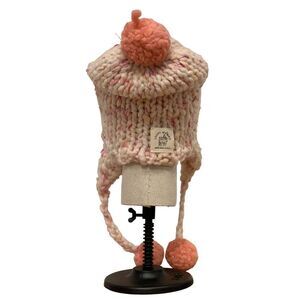Free People x Loopy Mango Aviatrix Hand Knit Merino Wool Pink White Trapper Hat