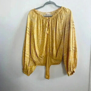 Free Peolle yellow floral bodysuit. Has wide billowy sleeves. Size XS. Excellent used condition