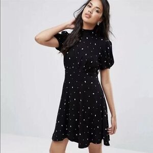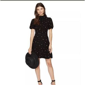 Free People Abbie Printed Polka Dot Mini Dress Mock Neck with Tie Women’s Size 0